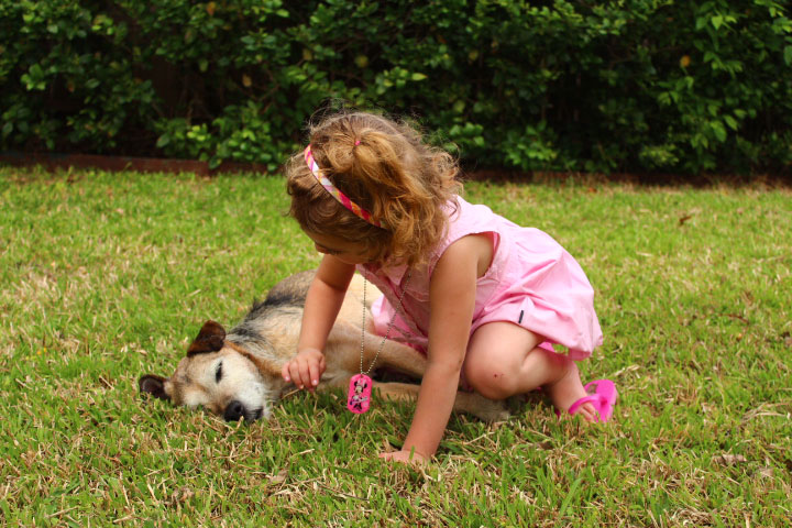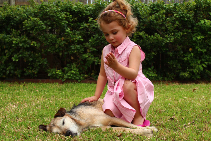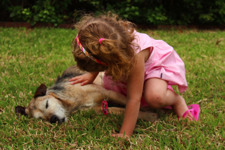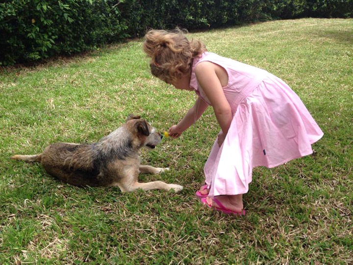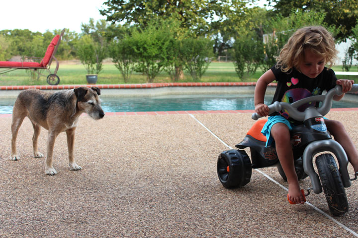 My grand-niece, who we call Hay and who turned 4 a few weeks ago, first met Primo soon after I brought him over from Italy, when we were staying at my parents’ house. My mom had Hay come stay for a few days and Primo did nothing during those days except follow Hay around and tilt his head and stare at her until she would pet him, but I guess “until” is the wrong word because it implies he stopped following and tilting and staring when she petted him, which he did not. He had decided to love her, and love means being creepy.