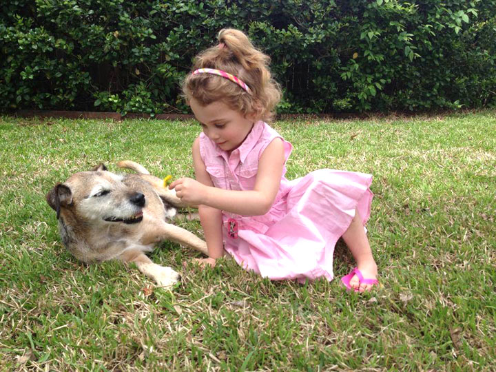 That is definitely Primo cute! As a great grandmother I can assure you there is NOTHING cuter than a 4 year old little girl, specially if she has those curly locks. That would be my granddaughter #1 so don’t tell #2 cause she had, and has, straight, straight hair. But they are grown, almost 21 and almost 17, so coming up in the ranks are the greats, a 4 year old boy, and he is CUTE, and twins, boy and girl age 3, also CUTE. There is nothing grandmothers, aunts and friends like more than seeing these cute pictures. And if you are a dog lover, too, JACKPOT.