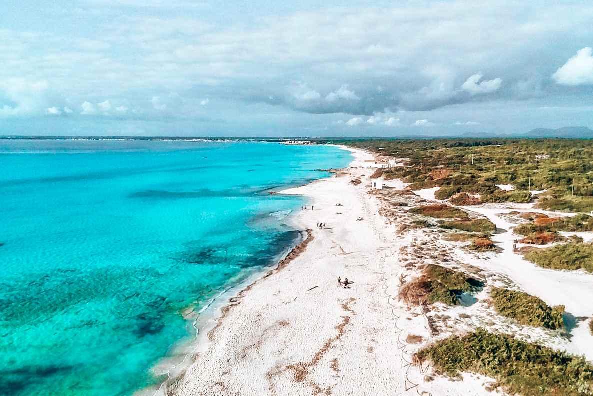 Although this looks more like a Caribbean beach, you will find the beach of Es Trenc on Majorca! On the south coast of the island to be precise. The pearly white sand combined with the bright blue water makes for a beautiful picture... Es Trenc is more than 2 kilometres long, so there's always a spot to be found. There is also a large car park close to the beach to park your car. There are a few bars where you can go for a snack or drink, but you won't find much else in the area.