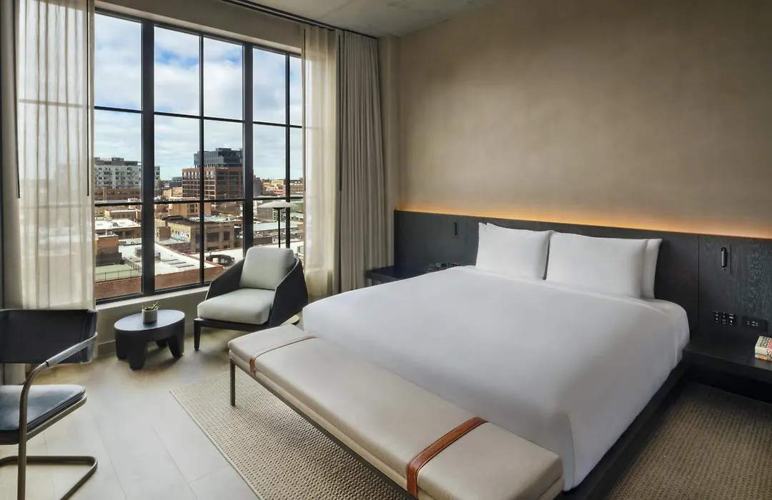 Nestled in the lively heart of Fulton Market, The Hoxton, Chicago merges industrial chic with modern comfort, making it a standout option for those seeking a boutique hotel experience. Its design pays homage to the neighborhood's industrial past, featuring exposed brick, sleek concrete floors, and a warm, inviting palette that echoes the area's rich history. The hotel offers a rooftop pool with stunning city views, vibrant communal spaces perfect for work or relaxation, and rooms designed with a keen eye for detail. Each guest room showcases local artwork and thoughtful amenities, ensuring a stay that is both luxurious and culturally enriching. The Hoxton also prioritizes community engagement, hosting events that spotlight local artists and makers, truly embedding itself in the Fulton Market fabric.