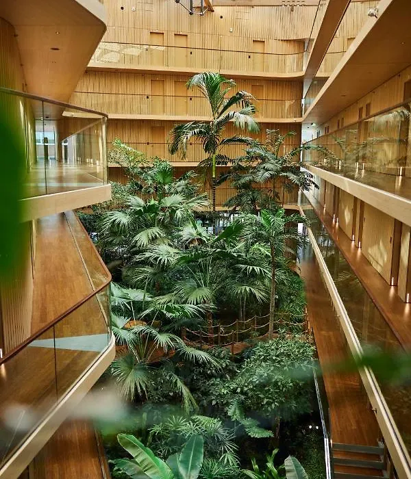 Hotel Jakarta Amsterdam stands on the eastern docklands, a testament to innovative Dutch architecture and green practices. This unique hotel is built almost entirely from sustainable materials and is powered by solar panels, with an indoor subtropical garden that contributes to the building's climate control. The rooms offer panoramic views of the IJ River, with energy-efficient features and natural, sustainable furnishings. The hotel’s wellness center, Café Jakarta, and bakery all emphasize sustainable operations, including the use of locally sourced ingredients. Hotel Jakarta Amsterdam not only provides a luxurious stay but also educates guests on sustainability, making it an ideal choice for travelers looking to reduce their carbon footprint.