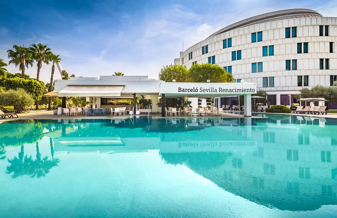 Barceló Sevilla Renacimiento is a family-friendly hotel that ranks high among Seville hotels with pools, featuring a large outdoor pool that is perfect for children and adults alike. This modern hotel is designed with spacious family rooms, equipped with all the necessities for a comfortable stay. The hotel's lush gardens offer plenty of space for kids to run around, while parents can lounge by the pool or enjoy a refreshing drink. On-site dining options provide child-friendly menus, ensuring that even the youngest travelers find something they love. The hotel is strategically located near the Isla Mágica theme park, making it a great choice for families looking to make the most of their Seville visit. With its excellent amenities and welcoming atmosphere, Barceló Sevilla Renacimiento is an outstanding option for family travelers.